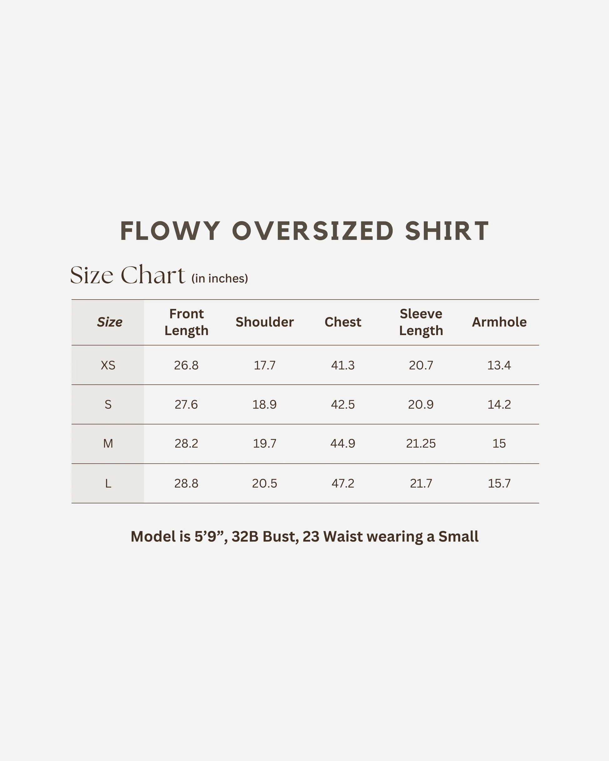 Size & Fit: True-to-size for a chic oversized fit (Model is 5’9”, 32B Bust, 23 Waist wearing a Small)